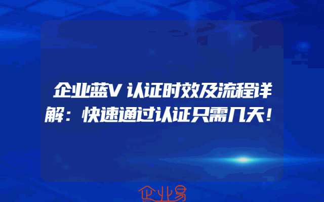 - 企业蓝V认证时效及流程详解:快速通过认证只需几天!