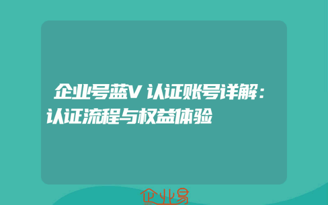 - 企业号蓝V认证账号详解:认证流程与权益体验