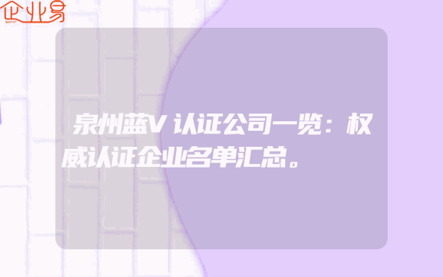 - 泉州蓝V认证公司一览:权威认证企业名单汇总。