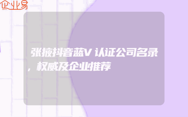 - 张掖抖音蓝V认证公司名录,权威及企业推荐