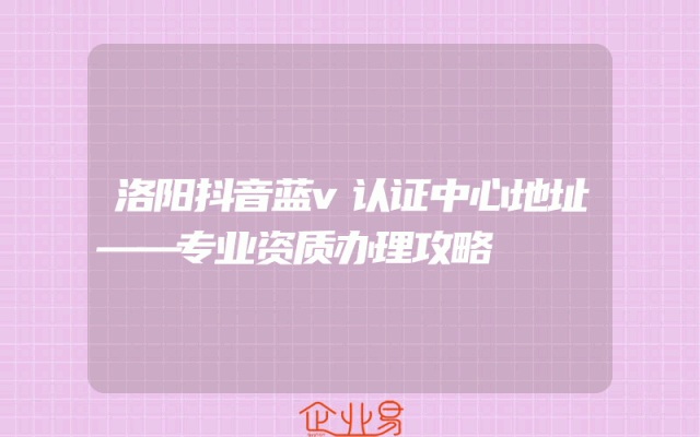- 洛阳抖音蓝v认证中心地址——专业资质办理攻略