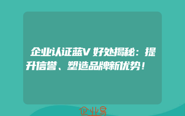- 企业认证蓝V好处揭秘:提升信誉、塑造品牌新优势!