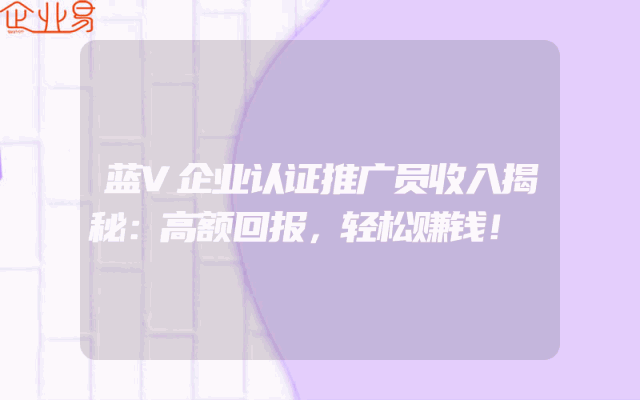 - 蓝V企业认证推广员收入揭秘:高额回报,轻松赚钱!