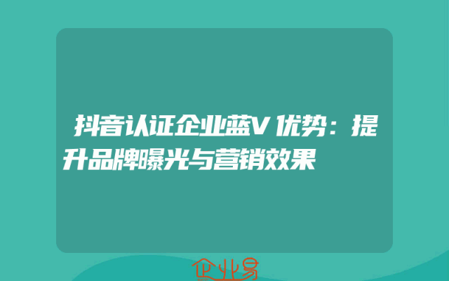 - 抖音认证企业蓝V优势:提升品牌曝光与营销效果