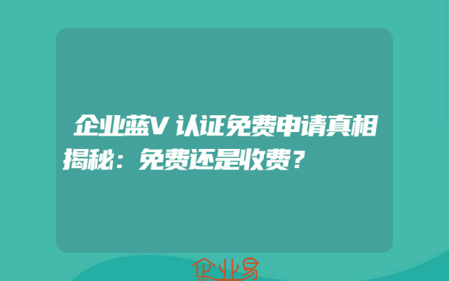 - 企业蓝V认证免费申请真相揭秘:免费还是收费?