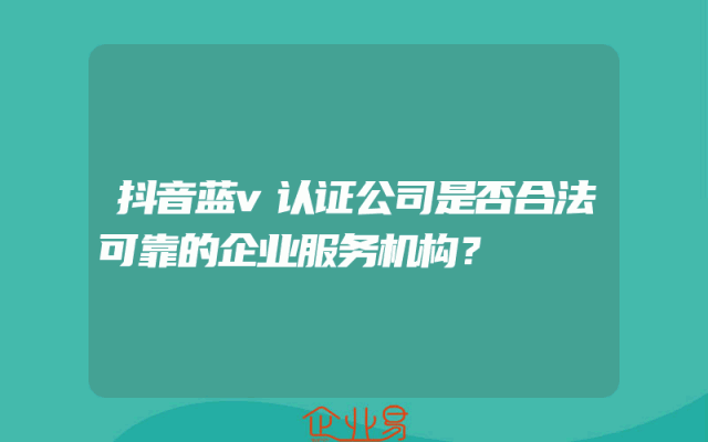 - 抖音蓝v认证公司是否合法可靠的企业服务机构?