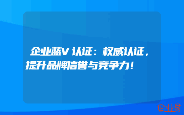 - 企业蓝V认证:权威认证,提升品牌信誉与竞争力!