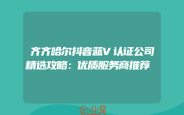 - 齐齐哈尔抖音蓝V认证公司精选攻略:优质服务商推荐