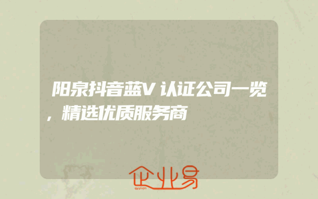 - 阳泉抖音蓝V认证公司一览,精选优质服务商