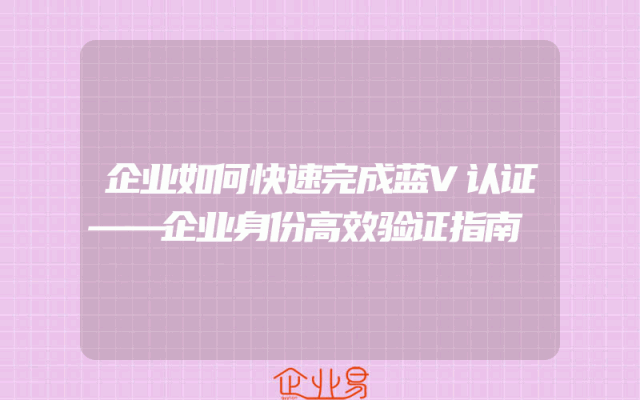 - 企业如何快速完成蓝V认证——企业身份高效验证指南