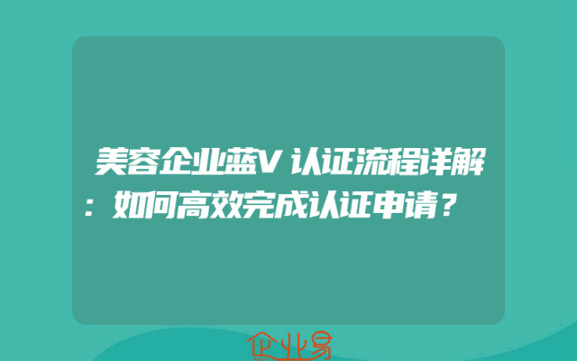 - 美容企业蓝V认证流程详解:如何高效完成认证申请?