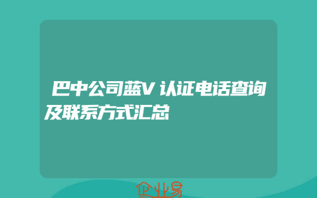 - 巴中公司蓝V认证电话查询及联系方式汇总