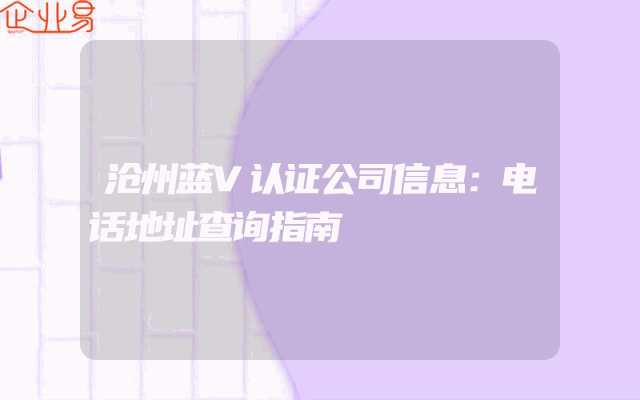 - 沧州蓝V认证公司信息:电话地址查询指南