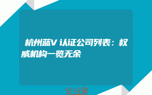 - 杭州蓝V认证公司列表:权威机构一览无余