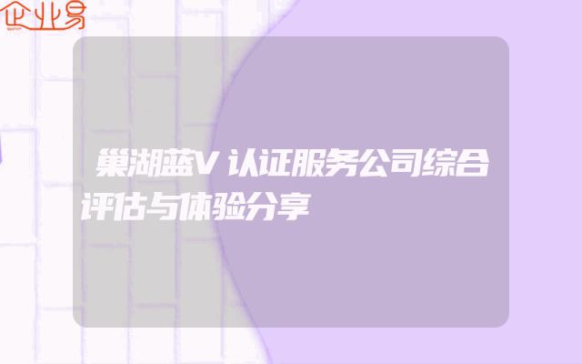 - 巢湖蓝V认证服务公司综合评估与体验分享