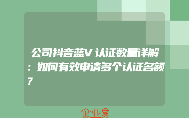 - 公司抖音蓝V认证数量详解:如何有效申请多个认证名额?