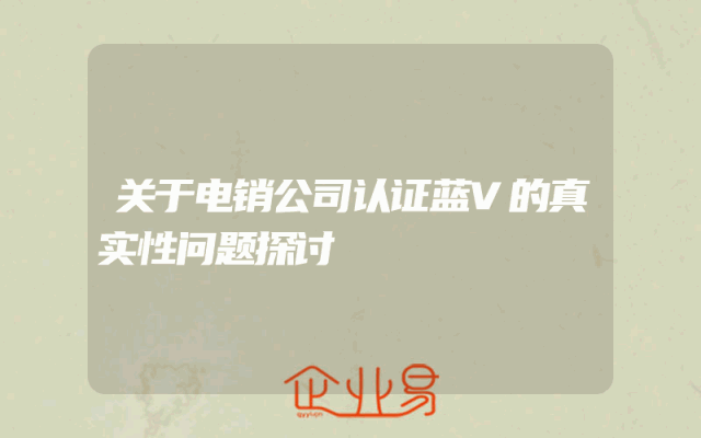 - 关于电销公司认证蓝V的真实性探讨随着互联网的普及和社交媒体的发展,电销公司也逐渐成为企业营销的一种重要手段。在这个过程中,许多电销公司为了提升品牌信誉和知名度,选择通过认证蓝V来增加公信力。然而,电销公司认证蓝V的真实性问题也引起了广泛的关