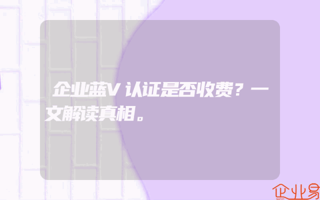 - 企业蓝V认证是否收费?一文解读真相一、蓝V认证简述蓝V认证是一种针对企业的官方认证标识,用于标识企业在特定平台上的正规身份。这种认证通常涉及企业真实性的核实,包括企业信息、营业执照等资质文件的审核。通过蓝V认证的企业的信息真实性、合法性得到