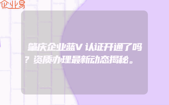 - 肇庆企业蓝V认证开通了吗?资质办理最新动态揭秘。