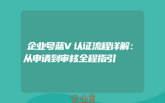 - 企业号蓝V认证流程详解:从申请到审核全程指引