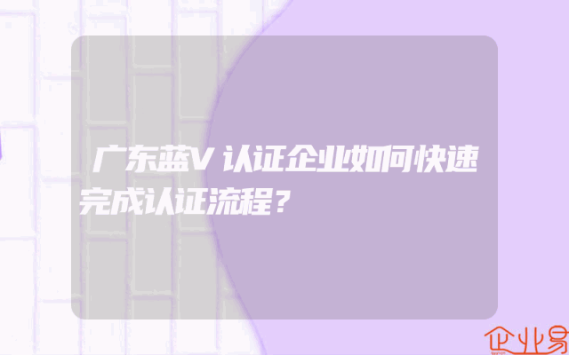 - 广东蓝V认证企业如何快速完成认证流程?