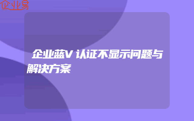 - 企业蓝V认证不显示问题解析与解决方案随着互联网技术的发展和企业信息化的普及,企业蓝V认证已经成为许多企业提升公信力的一个重要手段。但在实际操作过程中,有时会出现企业蓝V认证不显示的问题,这给企业带来诸多