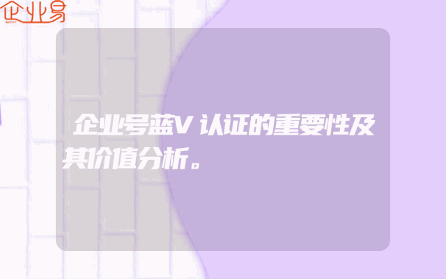 - 蓝V企业认证能否取消?解答你的疑惑一、蓝V企业认证的概念及作用蓝V企业认证是一种企业身份认证,旨在为企业提供一个官方、权威的标识,增强企业在特定平台上的公信力和影响力。通过蓝V认证,企业可以展示其真实身份,加强与用户的信任关系,提升品牌形象