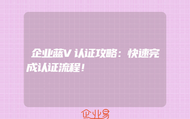 - 阿勒泰蓝V企业认证费用及开通流程详解