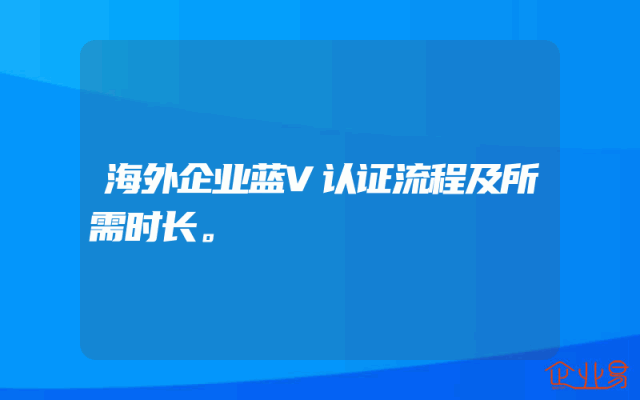 - 海外企业蓝V认证流程及所需时长解析一、海外企业蓝V认证概述在当今全球化的商业环境中,越来越多的海外企业选择进入中国市场,开展业务合作。在这个过程中,企业蓝V认证成为了许多海外企业关注的焦点。蓝V认证是社交媒体平台为企业用户提供的官方认证标识