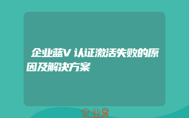 - 企业蓝V认证激活失败的原因及解决方案一、蓝V认证激活失败的原因分析在企业尝试激活蓝V认证的过程中,可能会遇到失败的情况。其原因是多方面的。首先,技术故障是常见的原因之一,比如网络问题、系统错误等可能导致认证过程无法顺利完成。其次,企业提交的