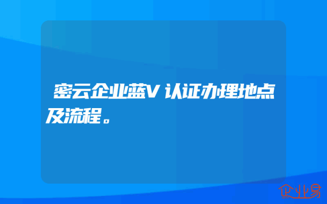 - 密云企业蓝V认证办理地点及流程解析随着网络的发展,企业对拥有良好信誉的渴望愈加迫切。在这样的背景下,企业蓝V认证逐渐成为企业的新追求。在密云地区的企业也面临着如何办理企业蓝V认证的问题。本文将详细解析密云企业蓝V认证的办理地点及流程,帮助企