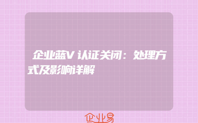 - 企业蓝V认证关闭:处理方式及影响详解一、企业蓝V认证关闭的方式在企业运营过程中,由于各种原因,有时可能会遇到需要关闭蓝V认证的情况。关闭的方式通常有两种:一种是企业自行操作,另一种是由平台管理方进行关闭。企业自行操作关闭,一般是在后台设置中