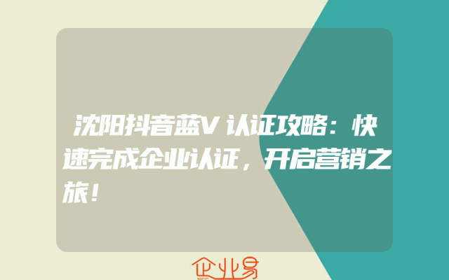 - 沈阳抖音蓝V认证攻略:快速完成企业认证,开启营销之旅!