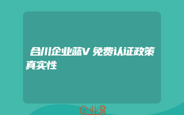 - 合川企业蓝V免费认证政策真实性解析一、政策发布背景近期,关于合川企业蓝V免费认证政策的消息引起了广泛关注。在数字化时代,企业认证对于提升企业形象和公信力具有重要意义。合川地区为了鼓励本地企业积极参与网络品牌建设,推动地方经济发展,适时推出了
