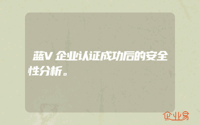 - 蓝V企业认证成功后的安全性分析一、认证标志的权威性蓝V企业认证成功后,企业将获得官方认证的标志,这代表企业在特定领域内的权威性和可信度。此标志的展示,能够向公众传递企业是经过严格审核的正规企业,从而增强了企业信息的安全性。二、信息安全保障经
