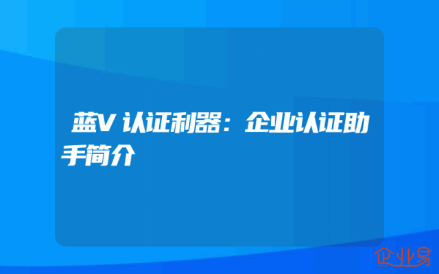 - 蓝V认证利器:企业认证助手简介