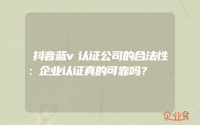 - 抖音蓝v认证公司的合法性:企业认证真的可靠吗?