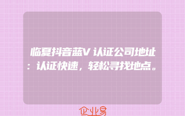 - 临夏抖音蓝V认证公司地址:认证快速,轻松寻找地点。