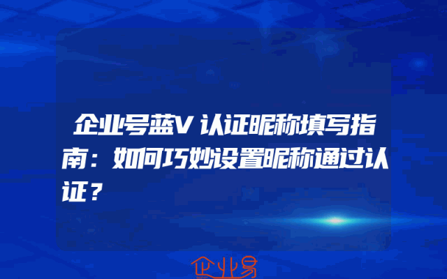 - 企业号蓝V认证昵称填写指南:如何巧妙设置昵称通过认证?