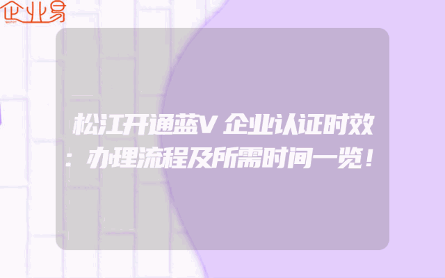 - 松江开通蓝V企业认证时效:办理流程及所需时间一览!