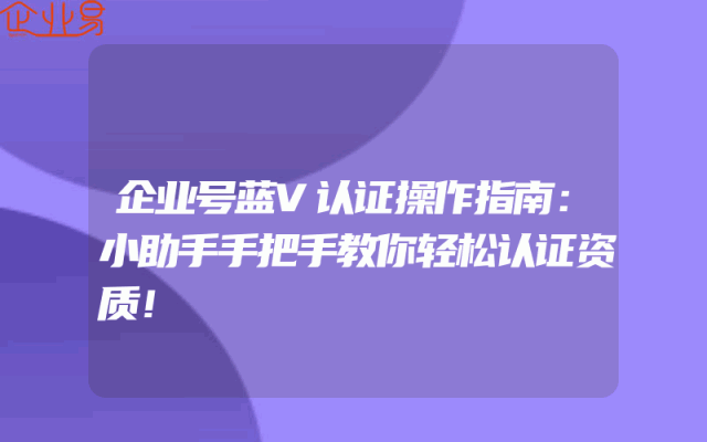 - 企业号蓝V认证操作指南:小助手手把手教你轻松认证资质!