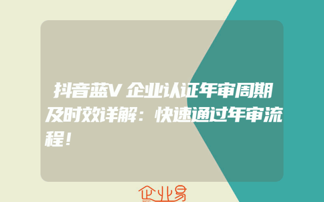 - 抖音蓝V企业认证年审周期及时效详解:快速通过年审流程!
