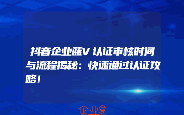 - 抖音企业蓝V认证审核时间与流程揭秘:快速通过认证攻略!
