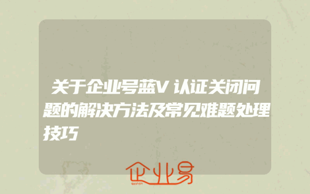 - 关于企业号蓝V认证关闭问题的解决方法及常见难题处理技巧