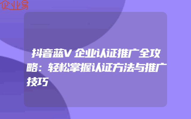 - 抖音蓝V企业认证推广全攻略:轻松掌握认证方法与推广技巧一、抖音蓝V企业认证的重要性在当今数字化时代,抖音已成为大众获取信息的重要途径之一。对于企业而言,拥有一个经过认证的抖音蓝V账号,不仅有助于提升品牌形象和知名度,还能增加用户信任度,为企