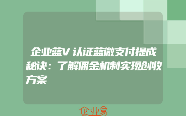 - 企业蓝V认证蓝微支付提成秘诀:了解佣金机制实现创收方案