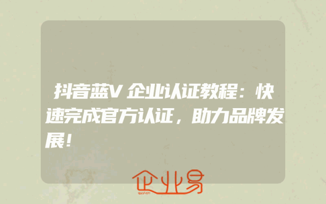 - 抖音蓝V企业认证教程:快速完成官方认证,助力品牌发展!