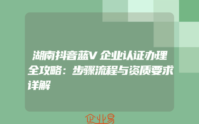 - 湖南抖音蓝V企业认证办理全攻略:步骤流程与资质要求详解