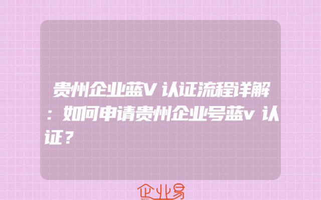 - 贵州企业蓝V认证流程详解:如何申请贵州企业号蓝v认证?