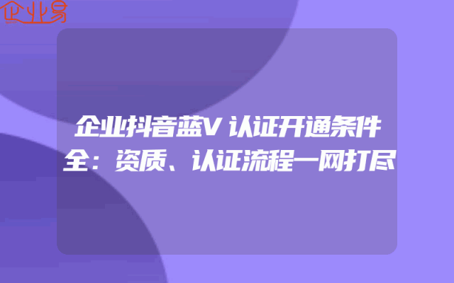 - 企业抖音蓝V认证开通条件全:资质、认证流程一网打尽